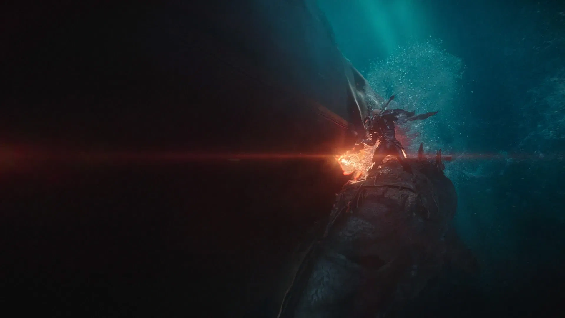 Rápidamente, Nuidis Vulko ordenó a los Hombres de Guerra contraaatacar al submarino, el cual lanzó un segundo ataque de torpedos. Atrapados bajo los escombros, Nereus fue ayudado por Marius, quien inmediatamente después montó un Tylosaurio para dirijirse al submarino. Mientras sus soldados lanzaban ataques de plasma con sus rifles, Nereus hizo uso de estas armas para destruir el ataque de un tercer torpedo, permitiendo que Marius incruste su tridente con el submarino para luego destruir una de sus hélices, causando que se desplome. Momentos después del ataque, un furioso Nereus aceptó unirse a la causa de Marius, planeado lanzar un contrataque a la superficie.[1]