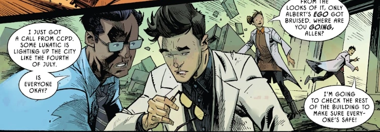 Singh llevó a Allen a su oficina para hablar sobre como él lo consideraba como un buen estudiante, aunque si Allen no ponía tiempo para su trabajo, Singh se vería obligado a sacarlo del programa de reclutas, y ambos vieron una persecución en vivo contra un auto armado, pero Singh le pidió a Allen no preocuparse porque Flash se encargaría posiblemente del problema. La conversación se vio interrumpida cuando Allen se retiró rápidamente para ir al baño, preocupando a Singh, que le recordó a Allen de sus documentos y trato de llamar a Allen tres veces, sin embargo, Singh no recibió respuestas de su estudiante.