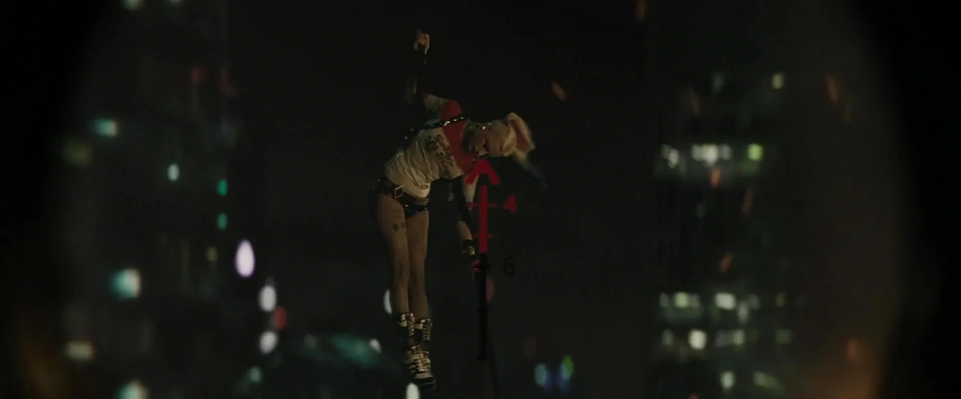 El escuadrón avanzó hasta llegar a una tienda de ropa, donde Quinzel rompió el cristal y robó un pequeño bolso de ahí. Flag le la encontró y comenzó a cuestionar sus actos delictivos, haciendo que ésta responda diciendo que ella y los demás criminales eran los malos y abandonó el lugar con el bolso.