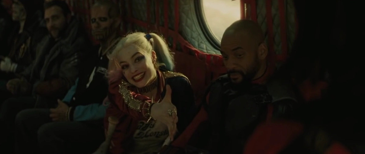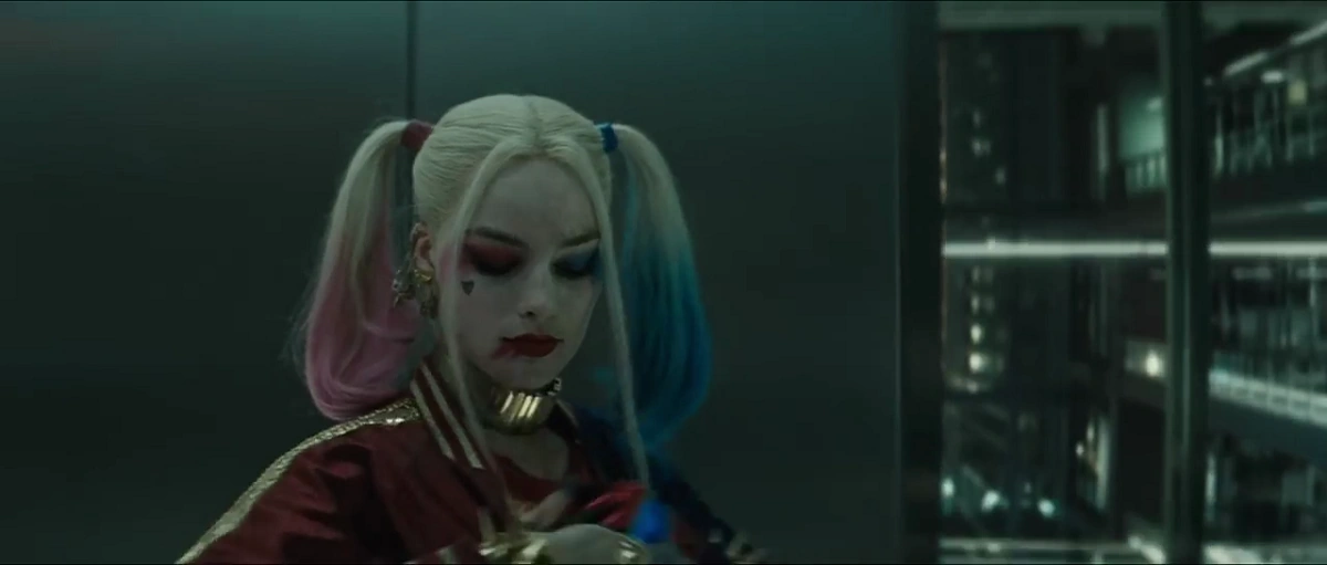 - En una escena flashback de Suicide Squad, mientras Harley bailaba con el Guasón, ella vistió un disfraz con los colores rojo y negro, que es una referencia al que usaba Harley en la serie animada de Batman, de Bruce Timm.