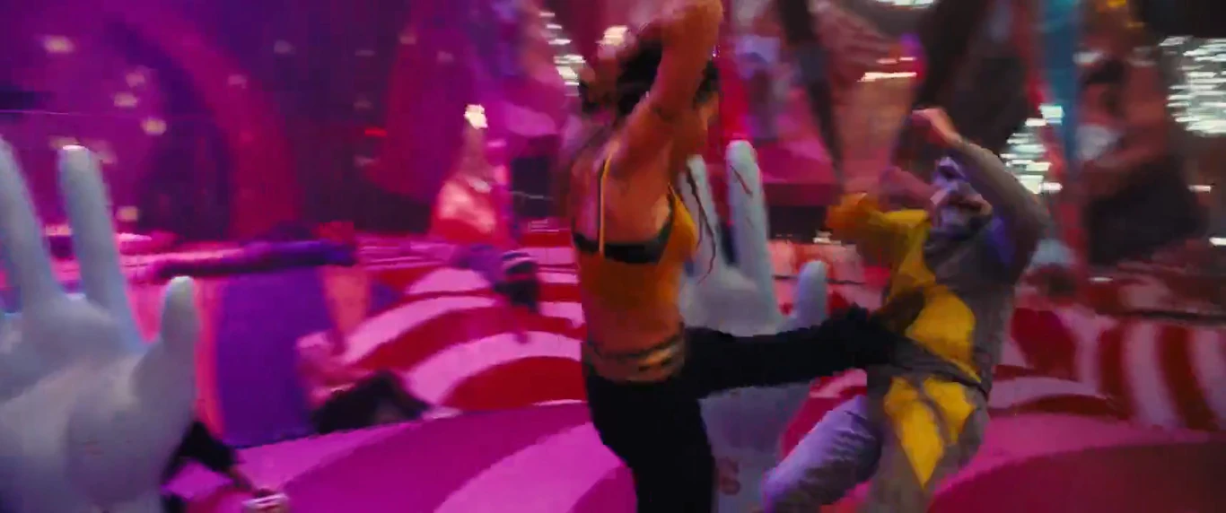 During the fight, Lance managed to defeat several bounty hunters and protected Cain from being attacked. She then knocked out several men with the boat to knock them out and reunited with Cain to keep her safe, and they weirdly watched as Quinn had on skates and not the shoes that she had before. Losing the bat, Lance had to fight with punches, but she was able to keep fighting with ease as she asked Quinn for a hair tie.