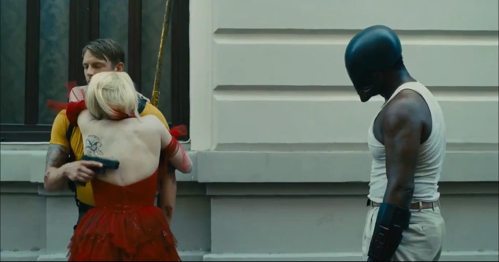 DuBois took advantage to deal a blow to the guard and Peacemaker along with Rick Flag joined together to free themselves and take the guards' weapons. After eliminating all the soldiers, DuBois, Flag, and Smith crashed on the ground, as the truck lost control. The trio managed to survive and got out of the truck to meet up with the squad, as they were ready to go to Jotunheim, but Flag changed the plans to go rescue Harley Quinn first.[1]