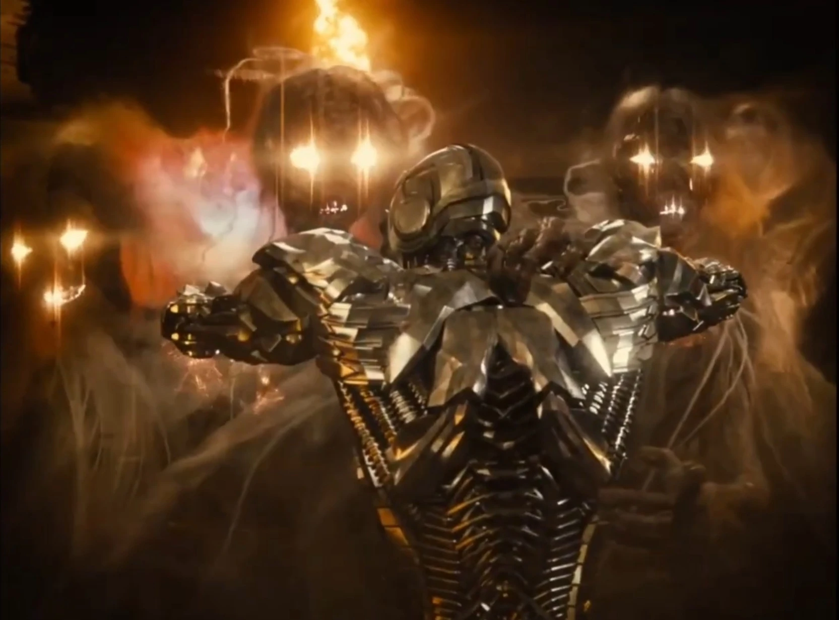 The Flash then went beyond the speed of light and reversed time to seconds before the Unity could fully synchronize, directing his charge towards Cyborg and allowing him to interface with it. Cyborg found himself in a simulated environment where he was greeted by his parents and himself prior to the accident. They offered to give him back his old body and revive his parents if he cooperates, to which Cyborg shoots them down and forcibly separates the Mother Boxes, who then transform into spectral hags as they fight back. The act of prying them apart by Superman and Victor resulted in them being destroyed, as was noted by DeSaad.