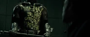 Following this, the retired suit would be kept by Bruce Wayne who left it on display inside a glass case in the Batcave to serve as a reminder of what's at stake when justice isn't served and to fuel his vigilante activities.[2]